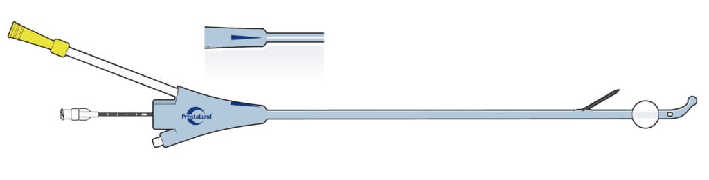 O cateter Schelin é inserido na uretra e, em seguida, o balão é inflado e ancorado no colo da bexiga. Ao girar o cateter e ajustar a posição da saída da agulha, o operador pode injetar medicamentos em vários locais diretamente no tecido prostático. O cateter é reposicionado empurrando-o de 2 a 5 cm para dentro da bexiga, girando e depois recuando e ancorando-o novamente. O lúmen de drenagem do cateter também possibilita a drenagem da bexiga. Não é possível remover a agulha do cateter.