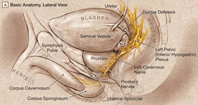 A técnica de injeção é baseada na microanatomia vascular e neural de Cleggs/Walsh, onde os vasos sanguíneos e os nervos entram e saem da próstata na área da base. Isso corresponde ao interior da próstata, onde um "bloqueio periprostático" transretal é colocado no local correspondente fora da próstata. (Veja a figura e a referência).
